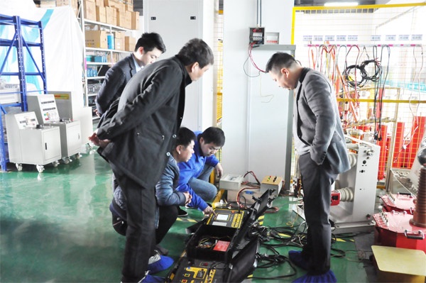 東北客戶(hù)此行主要考察SF6氣體回收裝置、無(wú)局部放電試驗(yàn)裝置、高壓開(kāi)關(guān)動(dòng)特性測(cè)試儀等設(shè)備。 在考察過(guò)程中,工程師還為客戶(hù)進(jìn)行了設(shè)備操作的現(xiàn)場(chǎng)演示,在演示過(guò)程中,客戶(hù)時(shí)不時(shí)會(huì)提出他們的疑問(wèn),我們的工程師也很耐心的為其解答。通過(guò)一天的考察后,東北客戶(hù)對(duì)國(guó)電西高的設(shè)備十分滿(mǎn)意,表示有合作意向。