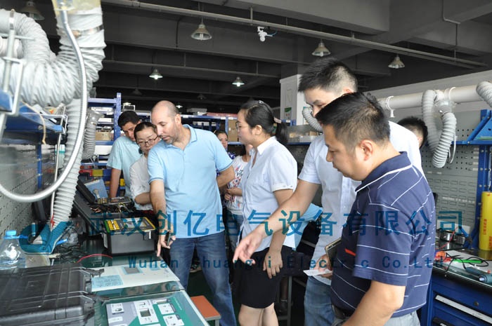 武漢最近酷熱難耐,氣溫一度飆升至40℃。就在這樣惡劣的天氣環(huán)境下,創(chuàng)億電氣迎來了巴拿馬的客戶來訪。本次一行三人的主要目的是為了學(xué)習(xí)CYPD-505便攜式局放巡檢測試儀的具體操作及原理。