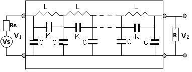 變壓器繞組的幅頻響應特性采用圖1所示的頻率掃描方式獲得。連續改變外施正弦波激勵源VS的頻率f(角頻率ω=2πf),測量在不同頻率下的響應端電壓V2和激勵端電壓V1的信號幅值之比,獲得指定激勵端和響應端情況下繞組的幅頻響應曲線。圖中:L、K及C分別代表繞組單位長度的分布電感、分布電容及對地分布電容,V1、V2分別為等效網絡的激勵端電壓和響應端電壓,VS為正弦波激勵信號源電壓,RS為信號源輸出阻抗,R為匹配電阻。