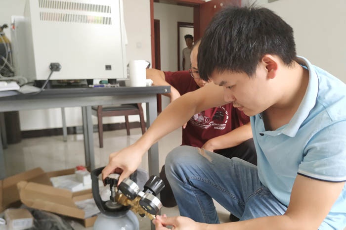在現(xiàn)場(chǎng)對(duì)試驗(yàn)設(shè)備清點(diǎn)、組裝,之后在客戶的組織安排下開(kāi)始培訓(xùn)。培訓(xùn)主要圍繞試驗(yàn)設(shè)備開(kāi)機(jī)前的準(zhǔn)備工作展開(kāi),指導(dǎo)客戶如何做堿液配置、氣路連接、檢漏等內(nèi)容。